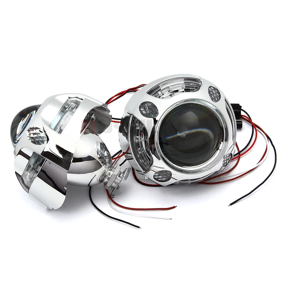 ROYALIN Car LED DRL Devil Eyes Motorcycle Demon Evil Eyes 2.5 Headlights Mini Projector Lens H1 w/ Turn-off Controller Wires DIY : Click Here